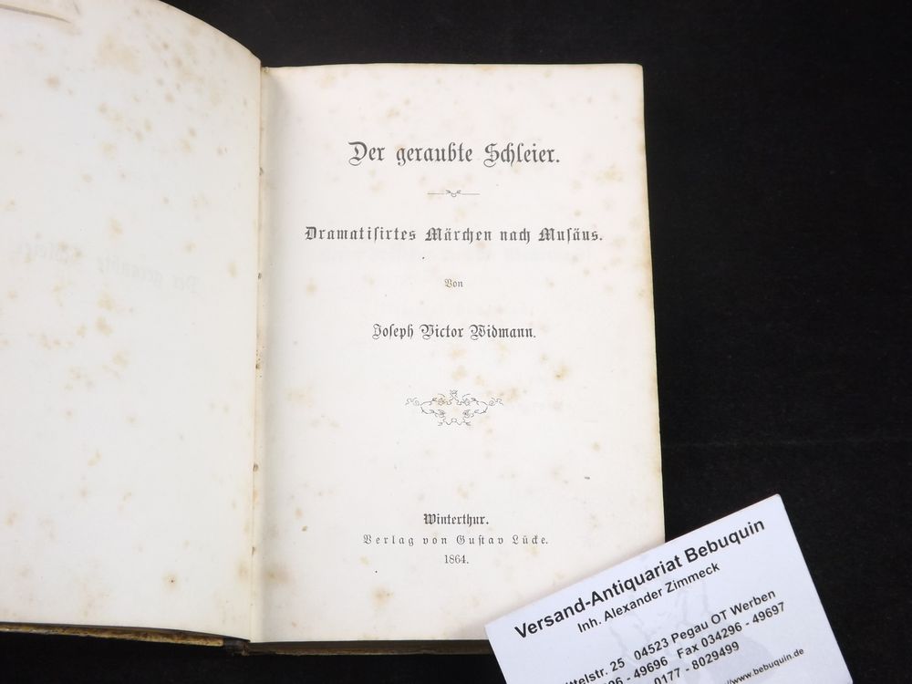 WIDMANN, Joseph Viktor: Der geraubte Schleier. Dramatisches Märchen nach Musäus. Winterthur (Lücke), 1864. kl. 8°. 198 S. HLn. der Zeit. etwas stockfleckig. EA des Erstlingswerks WG² 1.