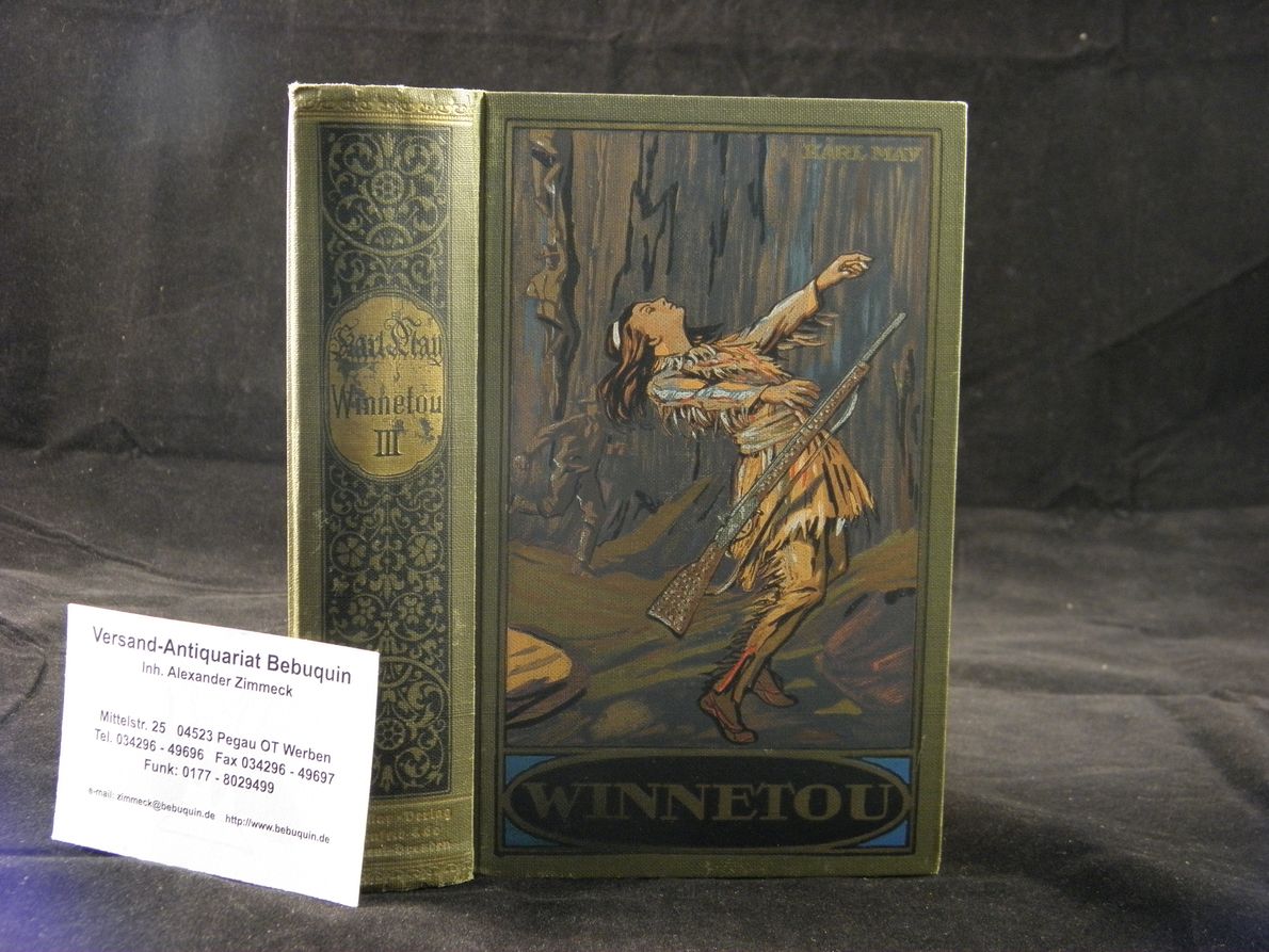MAY, Karl: Winnetou. III. Band. 245.– 261. Tsd. Radebeul (Karl May), (1930). 629 (2) S. farb. ill. OLn. leicht schief, Rücken etwas berieben, gutes Ex. mit farbstarkem Einband. = Gesammelte Werke, Bd. 9.