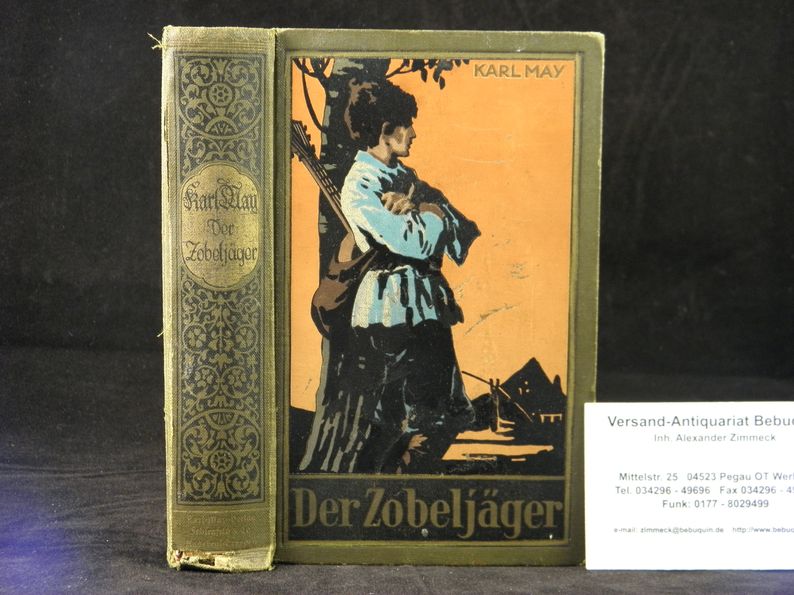 MAY, Karl: Der Zobeljäger. Roman. Bearb. von E.A. Schmid und Franz Kandolf. 1.– 20.Tsd. Radebeul (Karl May), 1934. 542 S. farb. ill. OLn. Rücken etwas geblichen, unteres Kap lädiert, Rücken teils angeplatzt, insgesamt noch gut = Gesammelte Werke, Bd. 63. Die Erstauflage dieses Bandes erschien unter zwei verschiedenen Titeln. Die jeweilige Stückzahl kann aus einem Brief von Dr. E.A. Schmid an Johannes Nixdorf vom 29.10.1934 erschlossen werden. Dort heißt es: „Der Zobeljäger, der aber von dem vierten Tausend ab „Zobeljäger und Kosak“ heißen wird, ist seit drei Tagen fertig.“ Es ist davon auszugehen, dass der Titel „Der Zobeljäger“ nur für die Vorbesteller produziert wurde. Dazu wurden entsprechende Titelblätter und Einbände gefertigt. Hermesmeier / Schmatz GW 63. Hier ein Exemplar dieser 3000er Vorauflage. Von allergrößter Seltenheit.