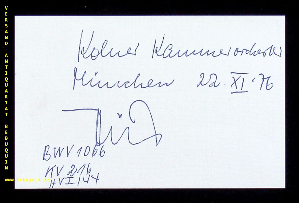 MÜLLER-BRÜHL, Helmut (Dirigent): eigenhändig signierte und datierte Portraitseite. München (Philharmonie), 22.11.1976. 8 x 12,5 cm. Karteikarte. Helmut Peter Müller-Brühl (* 28. Juni 1933 in Brühl; † 2. Januar 2012 ebenda) war ein deutscher Dirigent. (Wikipedia)