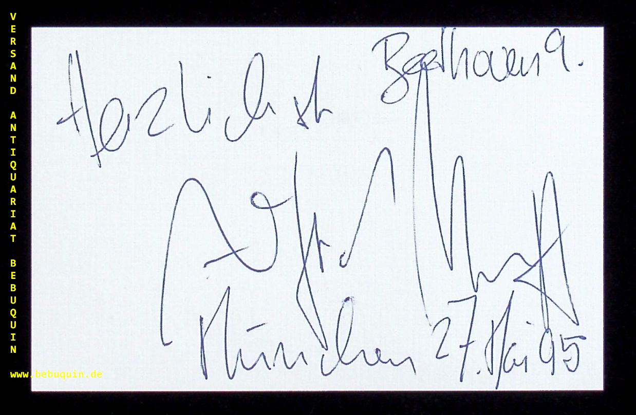 MUFF, Alfred (Bass): eigenhändig signierte und datierte Autogrammkarte. München (Philharmonie), 27.5.1995. 8 x 12,5 cm. Karteikarte. Alfred Muff (* 31. Mai 1949 in Luzern) ist ein Schweizer Opernsänger (Bassbariton). (Wikipedia)