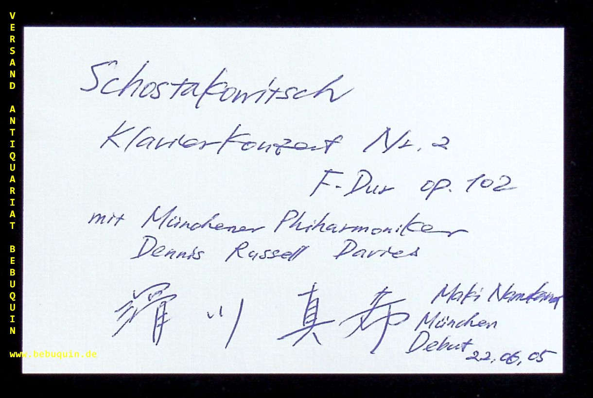 NAMEKAWA, Maki (Pianistin): eigenhändig signierte und datierte Autogrammkarte: München Debut. München (Philharmonie), 22.6.2005. 8 x 12,5 cm. Karteikarte. Maki Namekawa (* in der Präfektur Tokio) ist eine japanische Pianistin. (Wikipedia)
