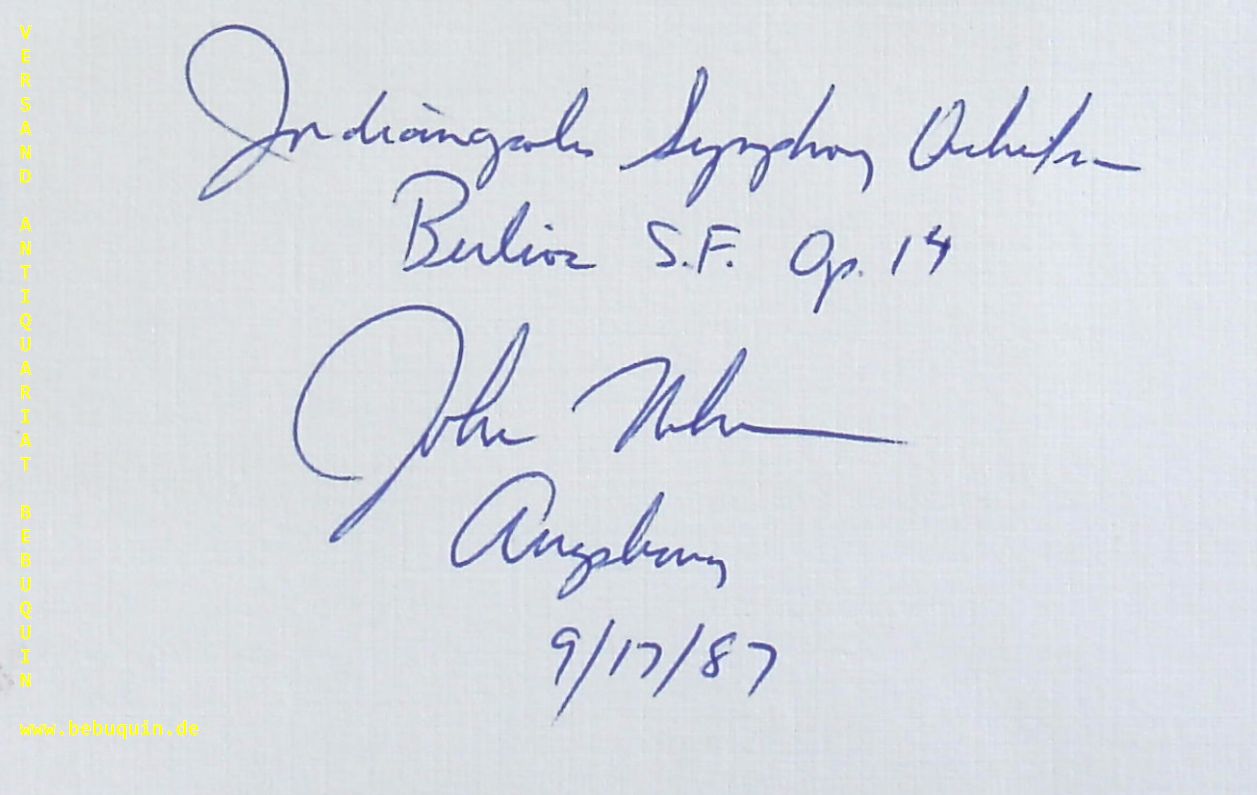 NELSON, John (Dirigent): eigenhändig signierte und datierte Autogrammkarte. München, 9.12.1987. 8 x 12,5 cm. Karteikarte. John Wilton Nelson (born December 6, 1941, San José, Costa Rica, of American parents) is an American conductor. His parents were Protestant missionaries. (Wikipedia)