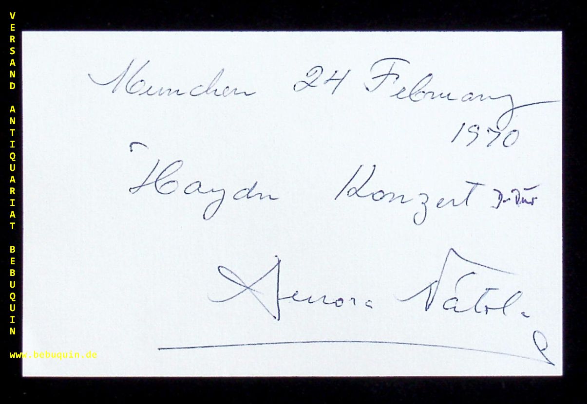 NOTOLA, Aurora (Cellistin): eigenhändig signierte und datierte Autogrammkarte. München, 24.2.1970. 8 x 12,5 cm. Karteikarte. Swiss-Argentine Cellistin (1923-2009), wife of the late Argentine composer Alberto Ginastera. (Wikipedia)