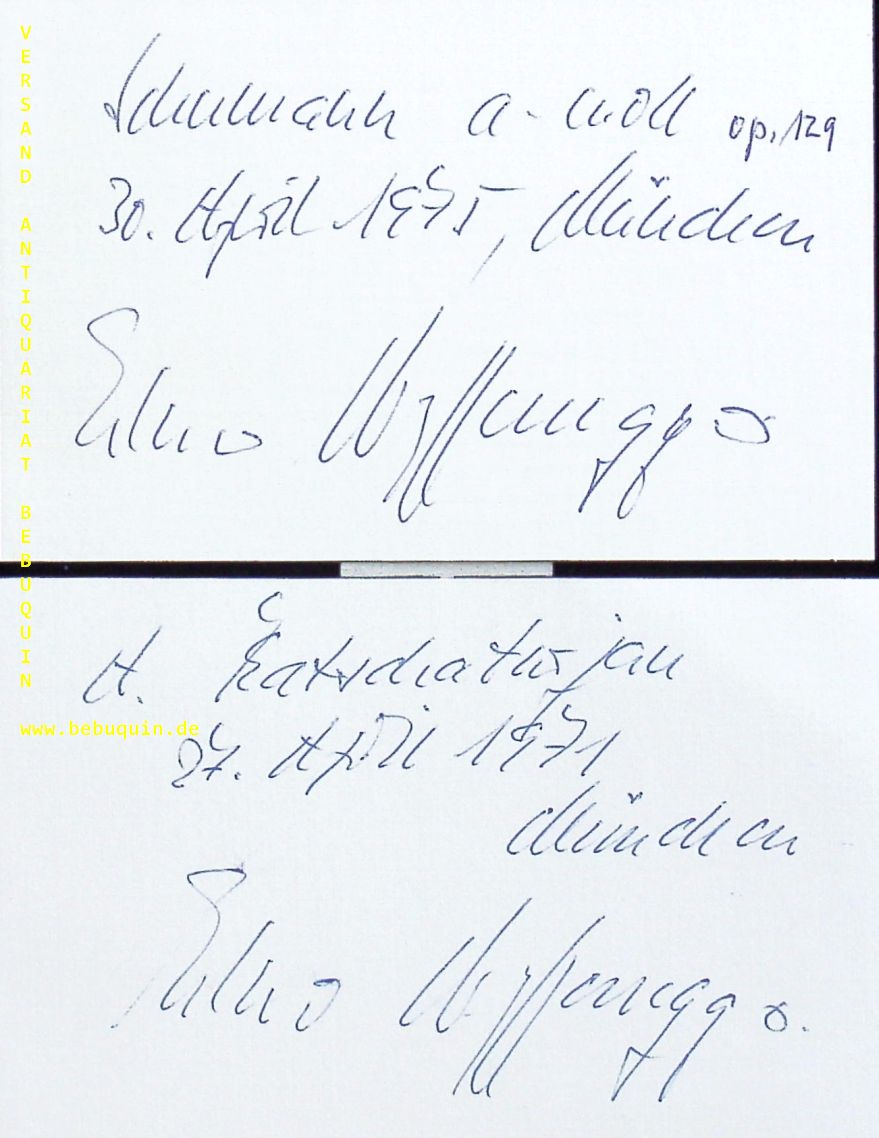 NYFFENEGGER, Esther (Cellistin): 2 eigenhändig signierte und datierte Autogrammkarten. München, 1971 + 1975. 8 x 12,5 cm. 2 Karteikarten. Esther Nyffenegger (* 1941), Schweizer Cellistin, Ehefrau des Chirurgen und Organisten Ernst Kern (Mediziner). (Wikipedia)