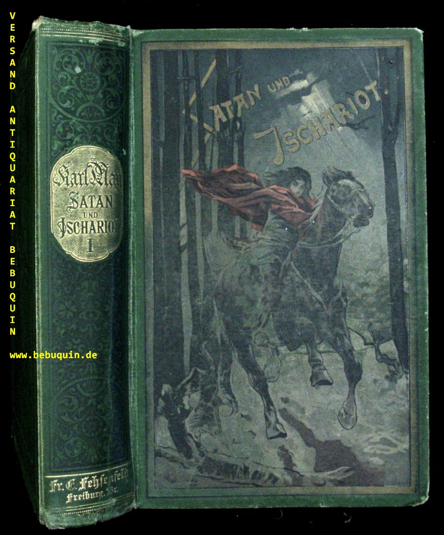 MAY, Karl: Satan und Ischariot. I. Band. Reiseerlebnisse. 11.– 15. Tsd. Freiburg (Fehsenfeld), 1897. 550 (4), farb. ill. OLn. schief gelesen, Deckel etwas gebräunt, NaV. = Gesammelte Reiseerzählungen, Bd. XX. Recht seltene 2. Auflage. Plaul 287.2.