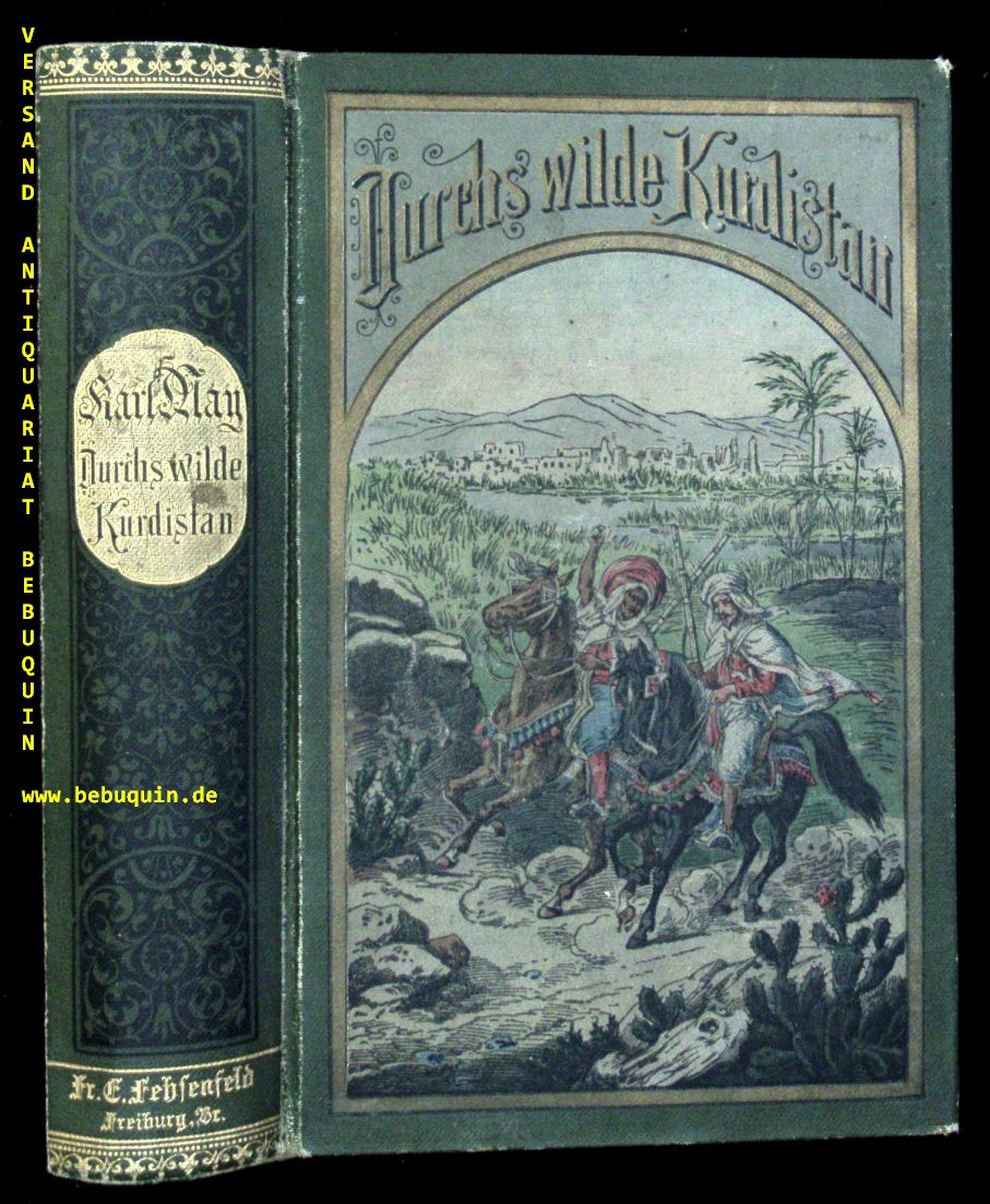 MAY, Karl: Durchs wilde Kurdistan. Reiseerzählung. 46.– 50. Tsd. Freiburg (Fehsenfeld), (1904). 638 (5) S. farb. ill. OLn. (DB 39). Kanten gering berieben, WaT., goldglänzender Rücken. = Gesammelte Reiseromane, Band II.