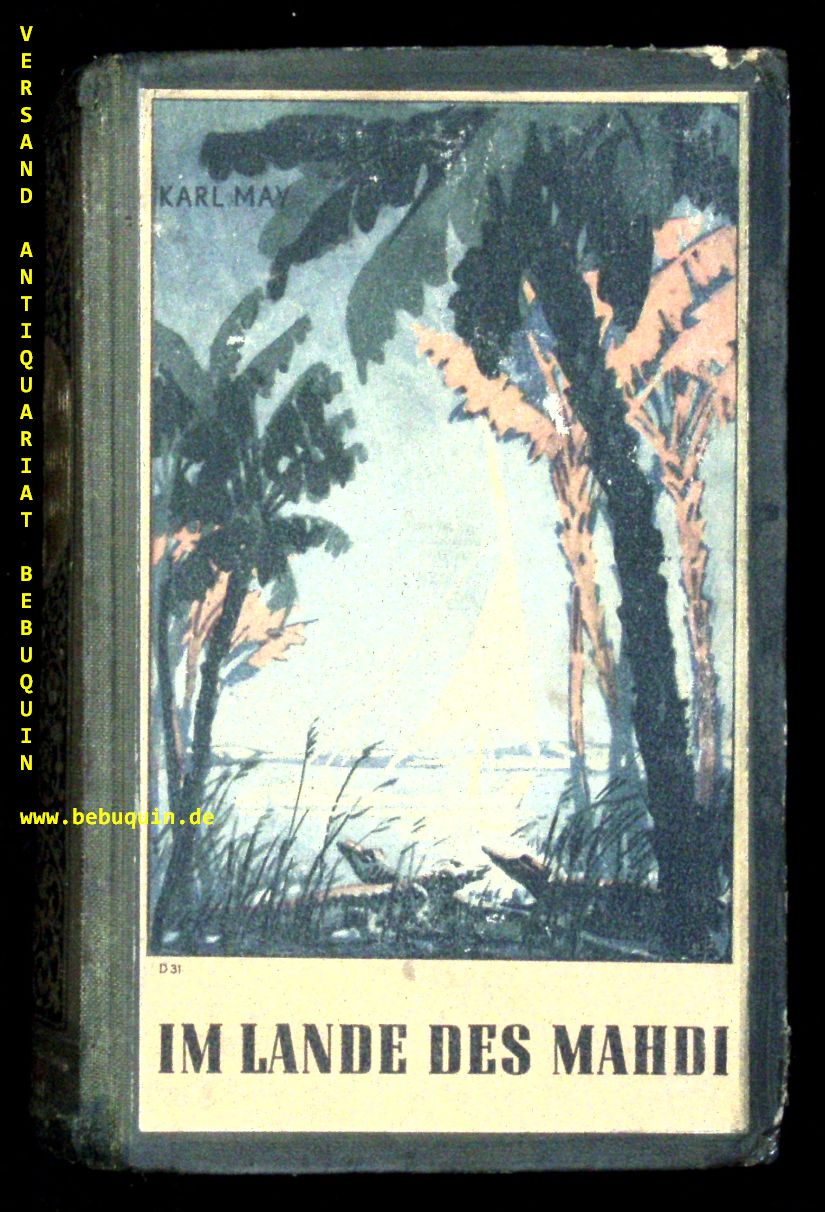 MAY, Karl: Im Lande des Mahdi. III. Band. 111.– 128. Tsd. Radebeul (Karl May), (1949). 566 (2) S. farb. ill. OHLn. (DB 150) Kapitale überklebt, Kanten bestoßen, einige Seiten fleckig, NaV. = Gesammelte Werke, Bd. 18. Erste ud einzige Auflage mit dieser Einbandvariante und letzte Ausgabe in Radebeul. Hermesmeier / Schmatz GW 18 NK.