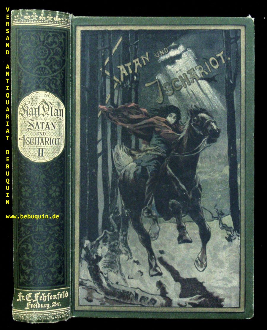MAY, Karl: Satan und Ischariot. II. Band. Reiseerlebnisse. 31. – 35. Tsd. Freiburg (Fehsenfeld), (1910). 540 S. farb. ill. OLn. (DB 72.) kaum schief gelesen, NaV, feines Ex. mit goldglänzendem Rücken. = Gesammelte Reiseerzählungen, Band XXI.