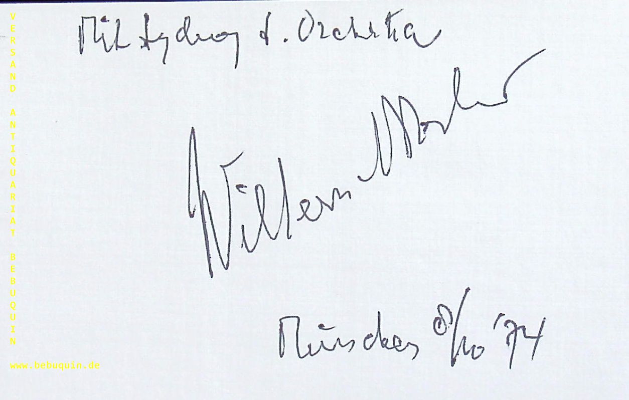 OTTERLOO, Willem van (Dirigent): eigenhändig signierte und datietrte Autogrammkarte. München 8.10.1974. 8 x 12,5 cm. Karteikarte. Jan Willem (William) van Otterloo (* 27. Dezember 1907 in Winterswijk; † 27. Juli 1978 in Melbourne) war ein niederländischer Dirigent, Cellist und Komponist. (Wikipedia)