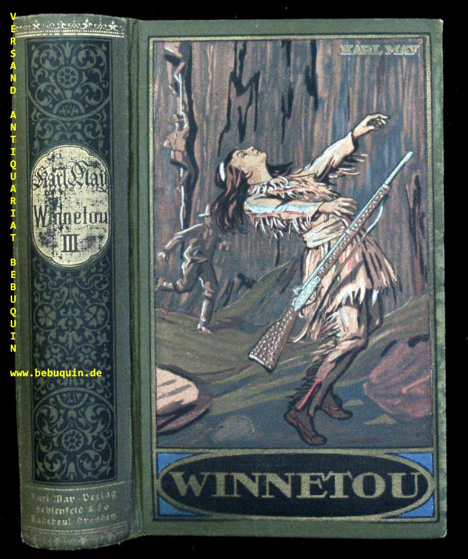 MAY, Karl: Winnetou. III. Band. 245.– 261. Tsd. Radebeul (Karl May), (1930). 629 (2) S. farb. ill. OLn. feines Ex. mit farbstarkem Einband, Rückenschrift etwas abgeblättert.. = Gesammelte Werke, Bd. 9.