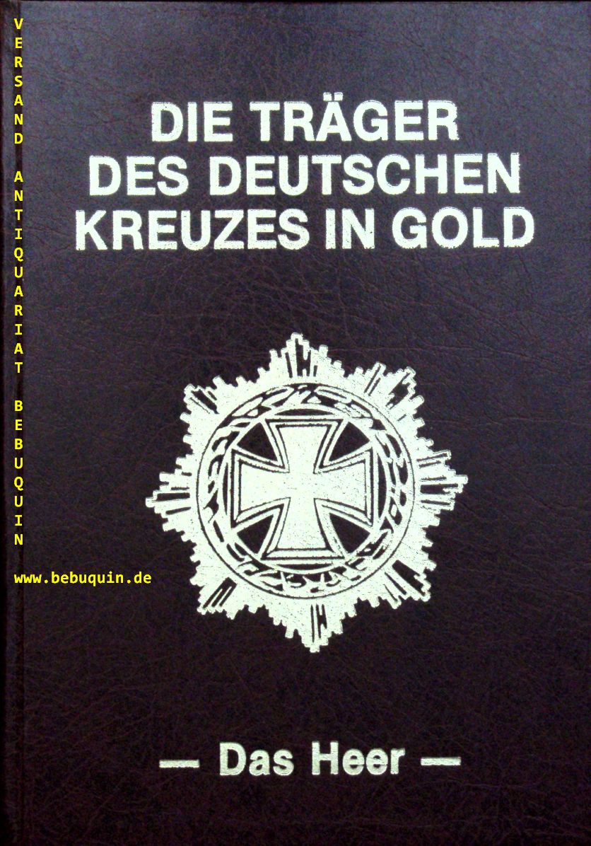 REGIMENTER.– SCHEIBERT, Horst: Die Träger des deutschen Kreuzes in Gold. Das Heer. Friedberg (Podzun Pallas), 1992. 438 (1) S. mit Abb. OLederimitat mit Goldprägungl. gutes Ex.