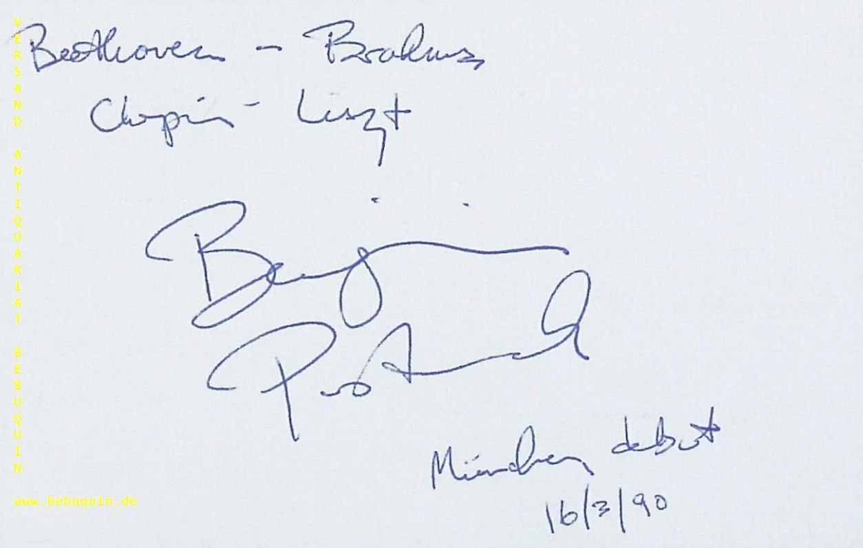 PASTERNAK, Benjamin (Pianist): eigenhändig signierte und datierte Autogrammkarte. München, 16.3.1990. 8 x 12,5 cm Karteikarte.