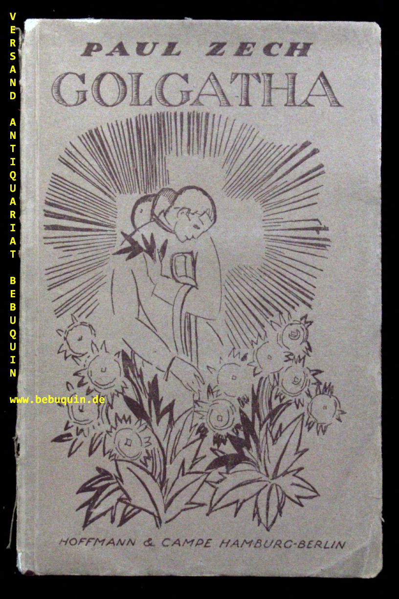 ZECH, Paul: Golgatha. Eine Beschwörung zwischen zwei Feuern. Hamburg (Hoffmann und Campe), 1920. Gr. 8°. 136 S. Ill. OKart von Bert Joho. Rückenkanten angeplatzt seltene EA. WG² 29; Raabe 339/18.