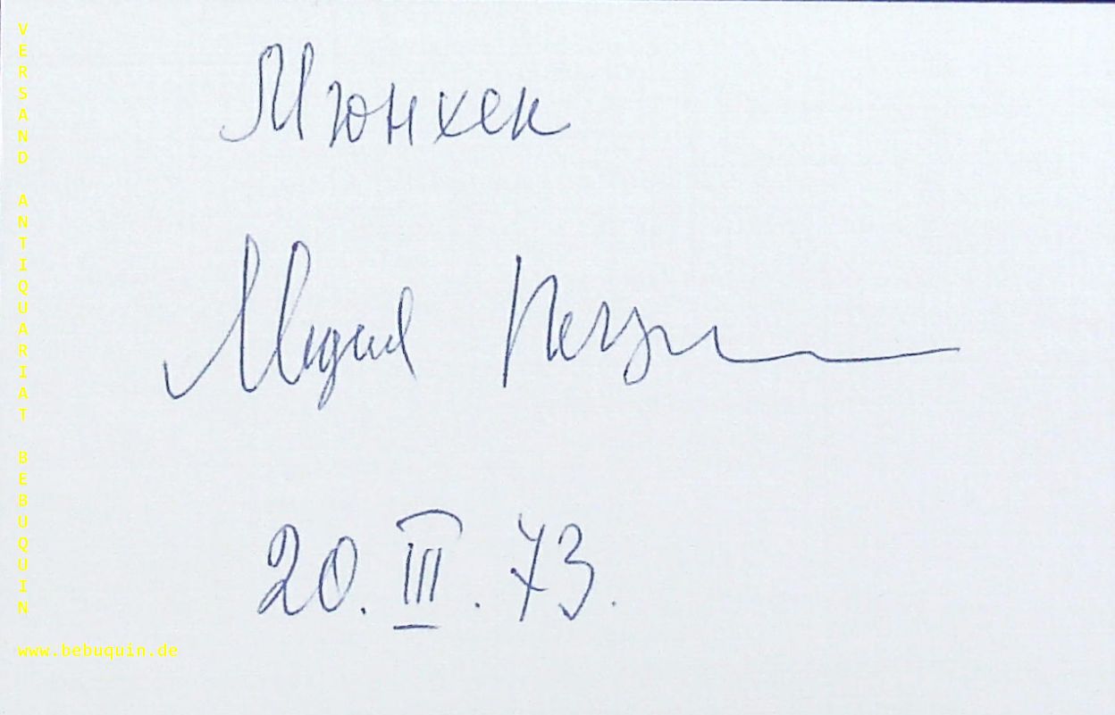 PETSCHERSKAJA, Lydia (Pianistin): eigenhändig signierte und datierte Autogrammkarte. München (Kongressaal), 20.3.1973. 8 x 12.5 cm. Karteikarte.