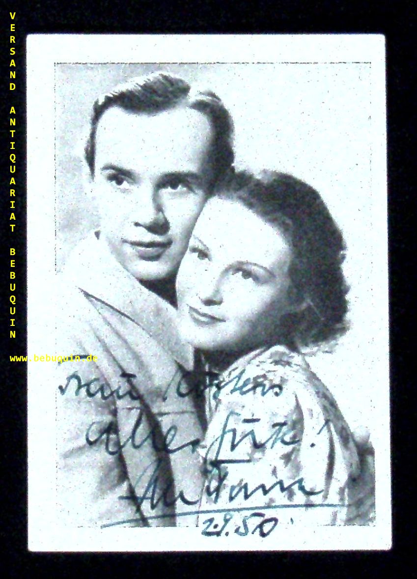 WERNER, Ilse: Sammelbild mit 3zeiliger eigenhändiger datierter und voll signierter Widmung auf Bildseite. Göttingen (Dehnen), 1950. 1 Sammelbild. = STAR-Sammelkarte Nr. 49. Ilse Werner, bürgerlich Ilse Charlotte Still (* 11. Juli 1921 in Batavia, Niederländisch-Indien; † 8. August 2005 in Lübeck), war eine deutsche Schauspielerin, Sängerin, Synchronsprecherin und Kunstpfeiferin deutsch-niederländischer Herkunft, die ihre größten Erfolge mit Filmen während des Dritten Reiches hatte. (Wikipedia)