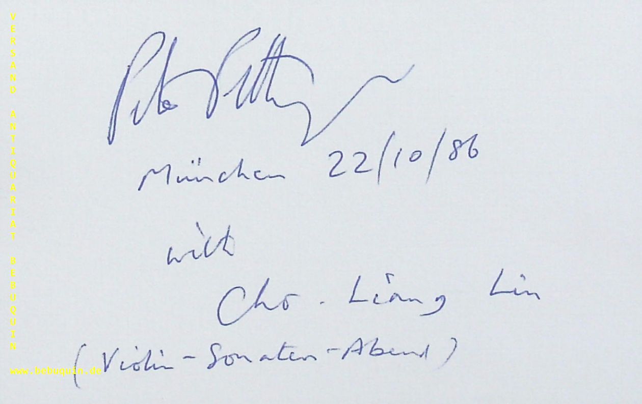 PETTINGER, Peter (Pianist): eigenhändig signierte und datierte Autogrammkarte. München (Kongressaal), 22.10.1986. 8 x 12.5 cm. Karteikarte. Peter Pettinger iat außderdem Autor der Biographie von Bill Evans.