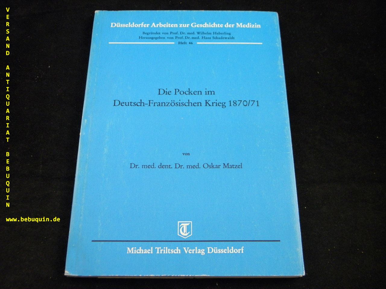 MEDIZIN.– MATZEL, Oskar: Die Pocken im Deutsch-Französischen Krieg 1870/71. Düsseldorf (Triltsch), 1977. 81 S. mit Abb. ill. Kart. gutes Ex. = Düsseldorfer Arbeiten zur Geschichte der Medizin, Heft 46. EA.