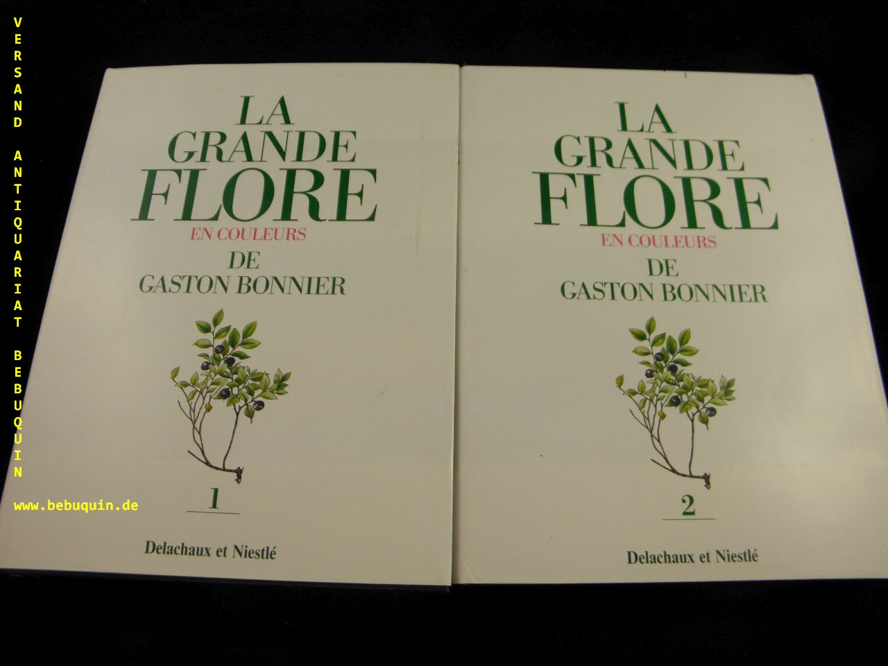 BOTANIK.– BONNIER, Gaston: La Grande Flore en Couleurs. Nomenclature moderne et index realisés par Raoul Palese et David Aeschimann. Bd. 1 + 2 in 2 Bänden (von 4). Lausanne (Delachaux et Niestlé), 1990. Fol. Insgesamt 729 farbigen Bildtafeln von Julie Poinsot. Band 2 mit Index in Latein, Deutsch und Französisch. OKunstldr. mit OUmschl. tadellos. Die hier fehlenden Bände 3 und 4 sind Textbände; Prachtvolle Neuausgabe der gesuchten Bildbände.