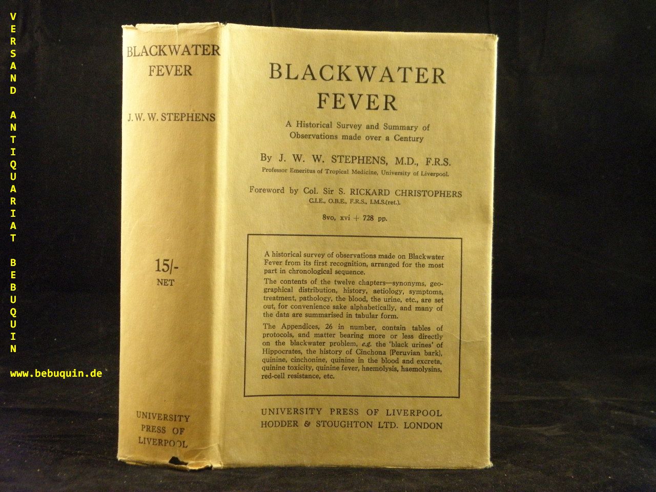 PARASITOLOGIE.– STEPHENS, J.W.W.: Blackwater Fever. A Historical Survey and Summary of Observations made over a Century. London (Hodder & Stoughton), 1937, Gr. 8°. XVI, 727 S. mit 1 Titelportrait. OLn mit OUmschl. feines Ex. EA.