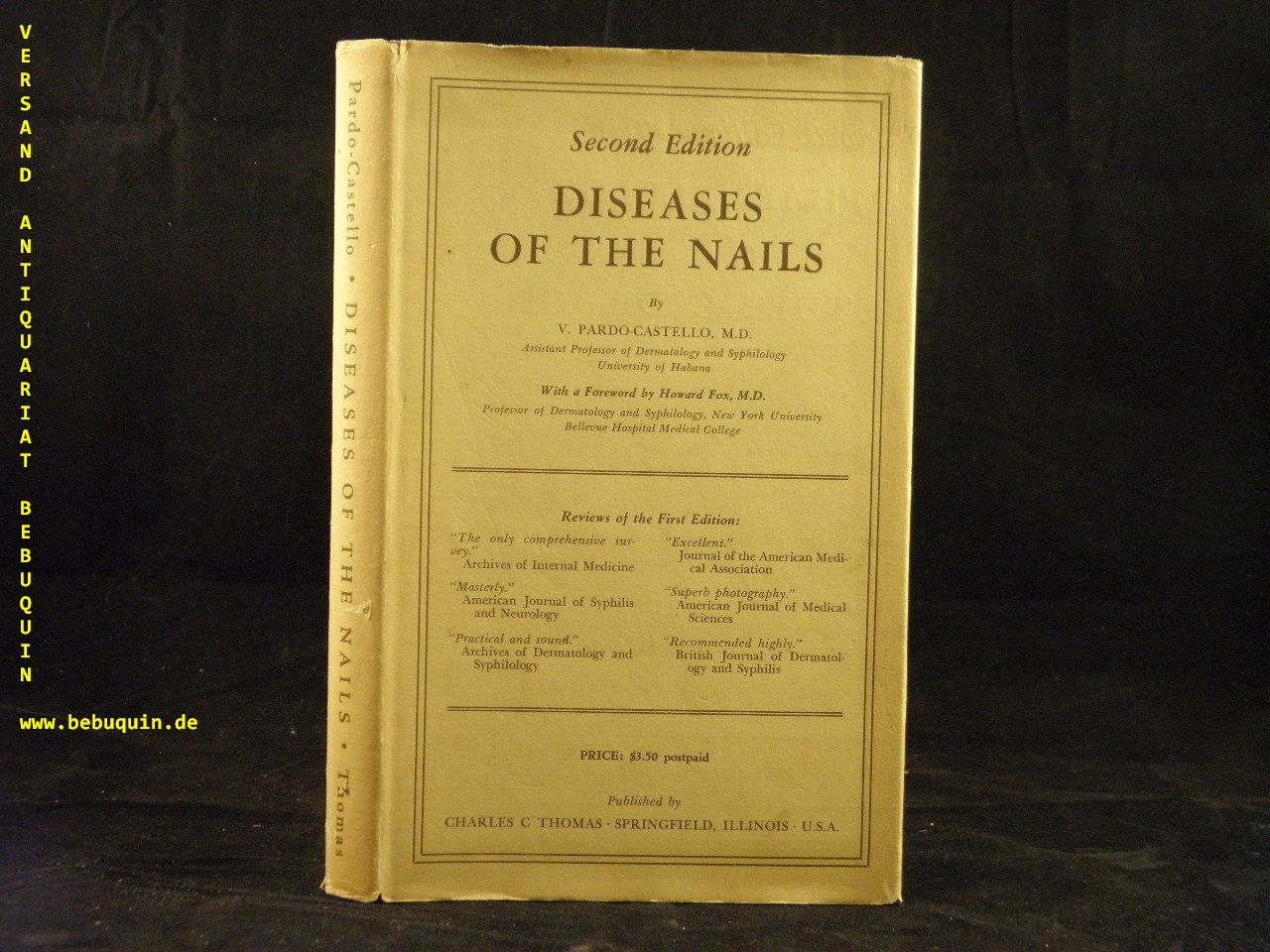 MEDIZIN.– PARDO-CASTELLO, V.: : Diseases of the Nails. Vorwort von Howard Fox. 2.ed. Springfield (Thomas), 1941. Gr. 8°. XXI, 193 S. mit 98 Abb. OLdr mit OUmschl. anfangs mit Unterstreichungen.
