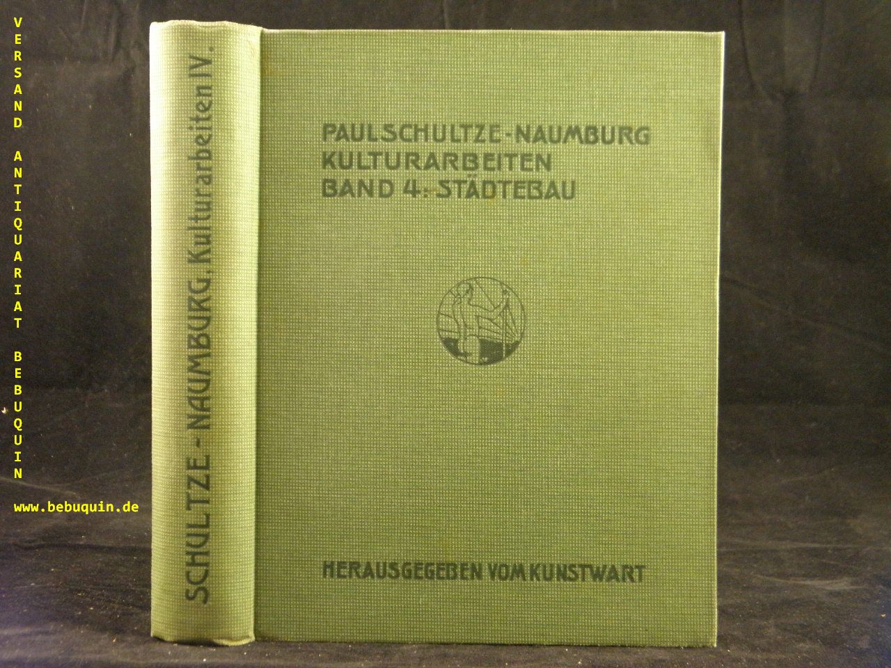 ARCHITEKTUR.– SCHUTZE-NAUMBURG, Paul: Staedtebau. 2. vermehrte Aufl. München (Callwey), 1909. 6 Bl., 481 (5) S. mit 288 Abb. OLn. Ex libris Reste auf Innendeckel, sonst feines Ex. = Kulturarbeiten, Bd. IV.