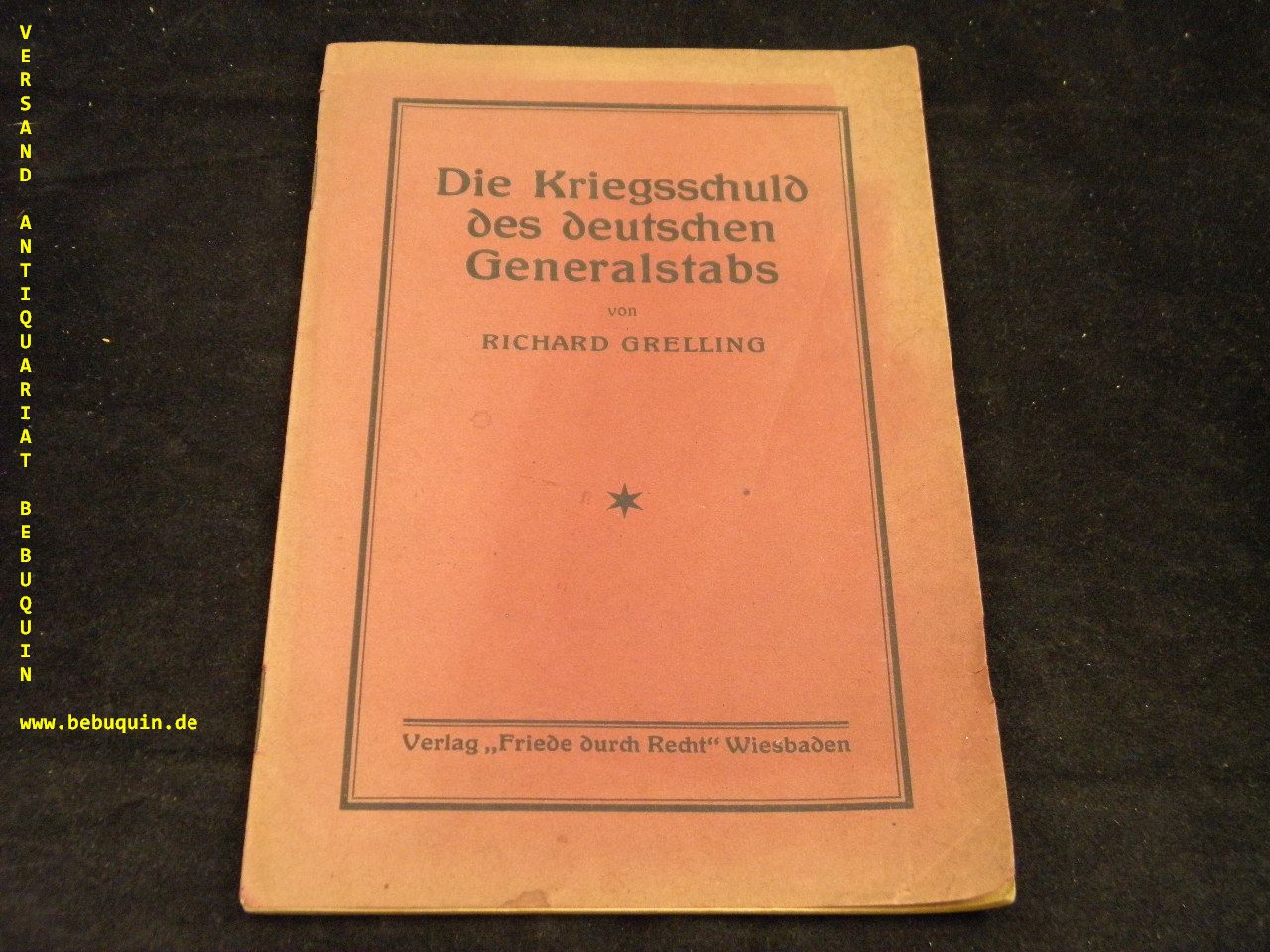 WEIMARER REPUBLIK.– GRELLING, Richard: Die Kriegsschuld des deutschen Generalstabs. Wiesbaden (Friede durch Recht), ca 1920. 23 S. OKart. etwas bestaubt. seltene EA.
