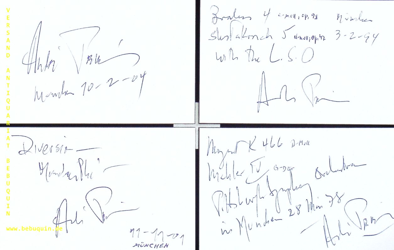 PREVIN, André (Komponist): 7 eigenhändig signierte und datierte Autogrammkarte mit interessanten eigenhändigen Programmbeschreibungen. München, 1978 – 2004. 8 x 12,5 cm. 7 Karteikarten André George Previn (* 6. April 1929 als Andreas Ludwig Priwin in Berlin; † 28. Februar 2019 in New York) war ein deutsch-amerikanischer Pianist, Komponist und Dirigent. (Wikipedia)