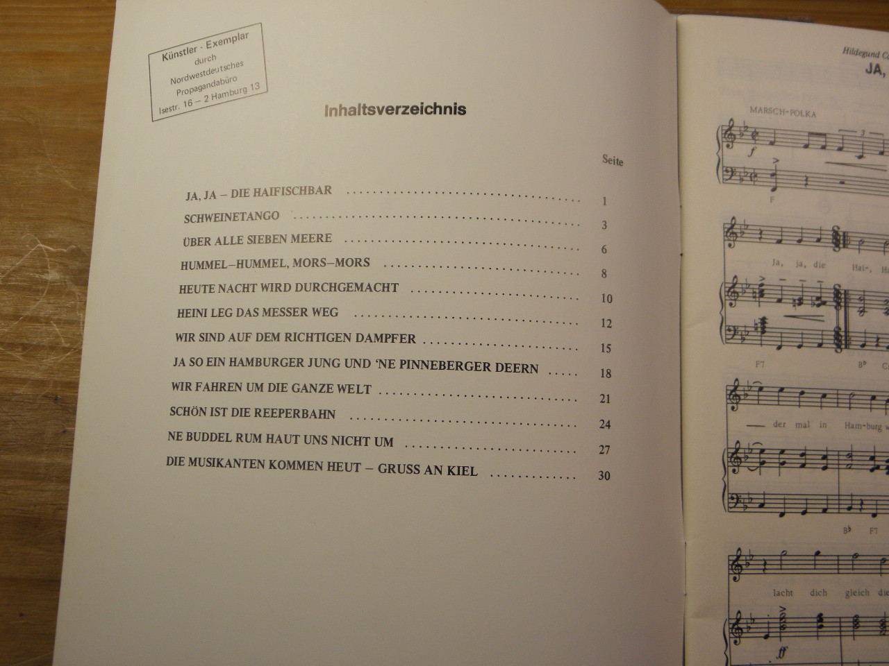 SONGBOOKS.– JA, JA – DIE HAIFISCHBAR.– Das große Notenalbum von der Waterkant. Gesang und Klavier. Hamburg (Magazine Music), 1977. 4°. 32 S. mit Noten. ill. OKart. gutes Ex. EA.