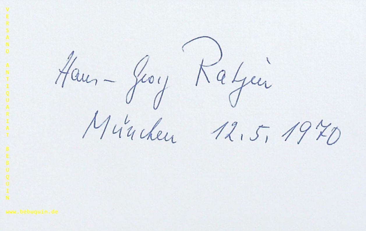 RATJEN, Hans-Georg (Dirigent): eigenhändig signierte und datierte Autogrammkarte. München (Herkulessaal), 12.5.1970. 8 x 12,5 cm. Karteikarte. Ratjen, Hans Georg (* 26. Mai 1909 Berlin, † 21. August 1994 München).