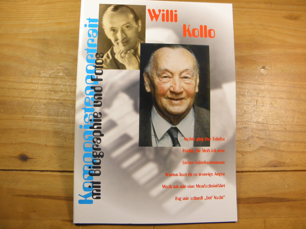 SONGBOOKS.– KOLLO, Willi: Komponistenportrait. Mit Biographie und Fotos. Gesang und Klavier. Berlin (Meisel), 2003. 4°. 40 S. mit Noten und Bildern. ill. OKart. gutes Ex. EA. Inhalt siehe Foto.