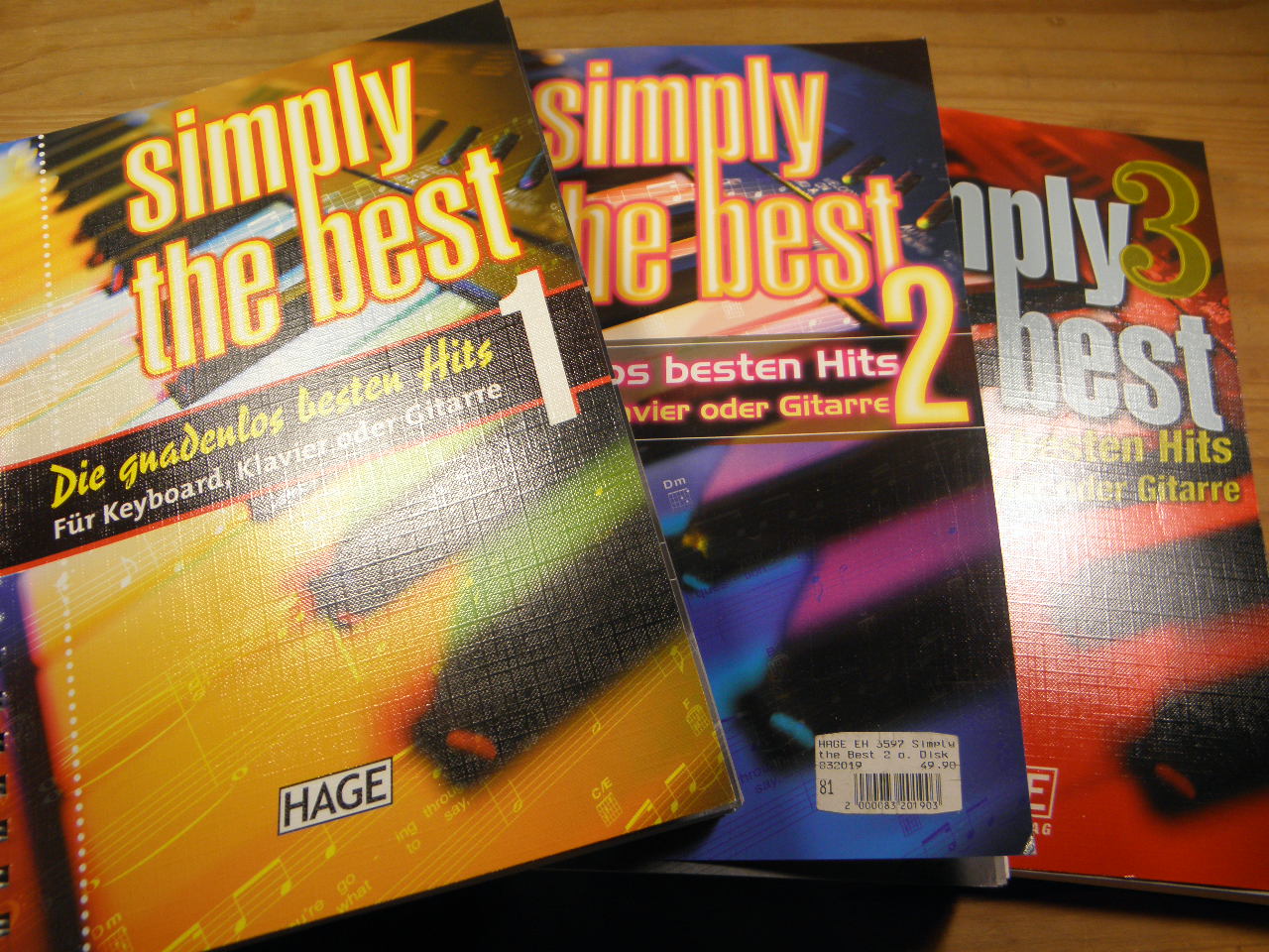 LIEDERBÜCHER.– SIMPLY THE BEST.– Die gnadenlos besten Hits. Für Klavier oder Gitarre. 3 Bände. Pommelsbrunn (Hage), 2000. 4°. ca 600 S. mit Noten. ill. OKart. mit Spiralbindung. ohne die Abteilung Keyboard, gutes Ex.