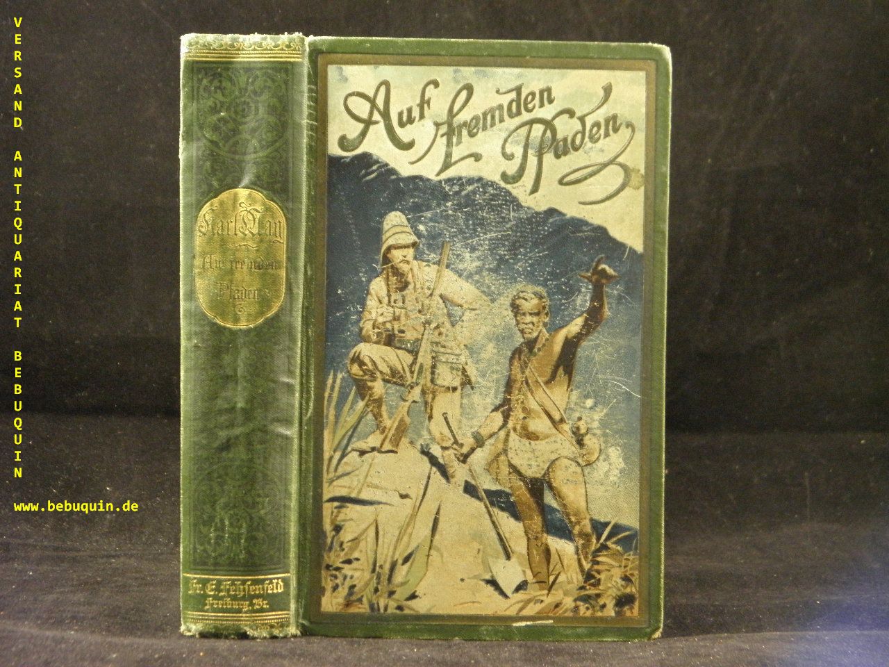 MAY, Karl: Auf fremden Pfaden. Reiseerlebnisse. 10.– 15. Tsd. Freiburg (Fehsenfeld), 1897. 598 (5) S. farb. ill. OLn. Einband etwas berieben, Rücken gebräunt, NaT, sonst gutes Ex. = Gesammelte Reiseerzählungen, Bd. XXIII. Plaul 294.2.