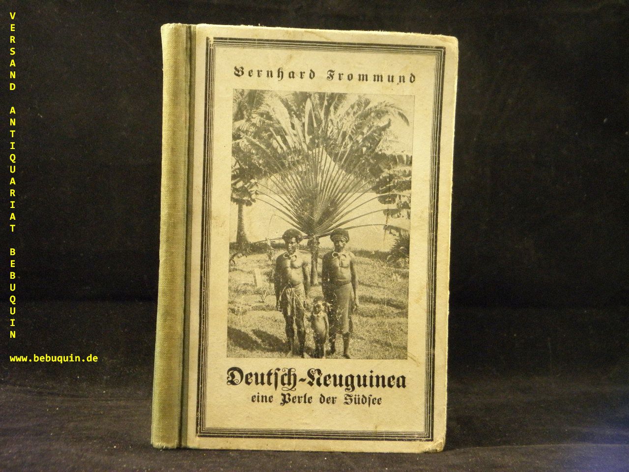 KOLONIEN.– FROMMUND, Bernhard: Deutsch-Neuguinea eine Perle der Südsee. Erlebnisse und Eindrücke eines Deutschen auf Deutsch-Neuguinea 1905 – 1908. Hamburg (Volkmar), 1926. 71 (2) S. mit 22 Originalaufnahmen des Verfassers. ill. OHLn. etwas bestaubt unsd verzogen, NaV. seltene EA.