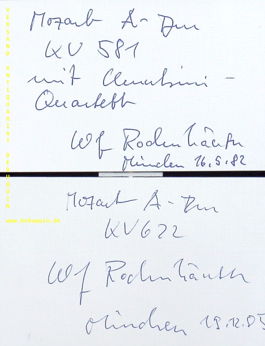 RODENHÄUSER, Ulf (Klarinettist): 2 eigenhändig signierte und datierte Autogrammkarten. München (Philharmonie), 1982 + 1985. 8 x 12,5 cm. 2 Karteikarten. Ulf Rodenhäuser – Professor für Klarinette. Der gebürtige Nürnberger hat am Konservatorium seiner Heimatstadt bei Richard Kätzel und an der Hochschule für Musik München bei Gerd Starke studiert sowie musikwissenschaftliche Studien an der Universität München betrieben. Zahlreiche Auszeichnungen bei Wettbewerben. Er war von 1973 bis 1987 Soloklarinettist der Berliner Philharmoniker sowie des Sinfonieorchesters des Bayerischen Rundfunks. (Wikipedia)