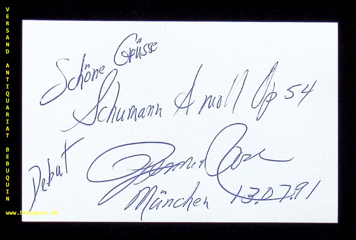 ROSE, Jerome (Pianist): eigenhändig signierte und datierte Autogrammkarte: Debut. München (Amerikahaus), 13.7.1991. 8 x 12,5 cm. Karteikarte. JEROME ROSE, hailed as „the Last Romantic of our own age“ and one of America’s most distinguished pianists, has been heard in major concert halls across five continents.