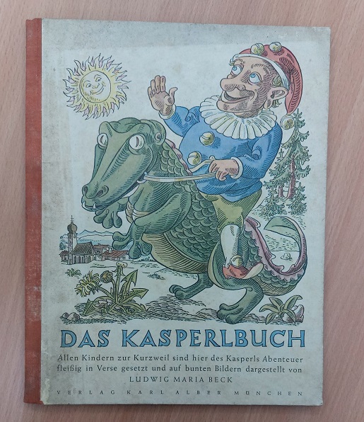 BECK, Ludwig Maria: Das Kasperlbuch. Allen Kindern zur Kurzweil sind hier des Kasperls Abenteuer fleißig in Verse gesetzt und auf bunten Bildern dargestellt. München (Alber), 1946. Gr. 8°. 32 S. mit 13 farb. Bildtafeln und einer Titeltafel. farb. ill. OHL: Einband bestaubt, innen gut. 1. Aufl. dieser Ausgabe. Mück 2940.