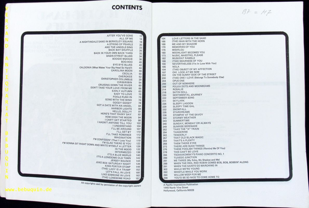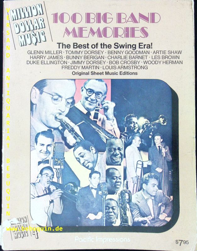 SONGBOOKS.– 100 BIG BAND MEMORIES.– The Best of the swing Era! Original Sheet Music Edition. Hollywood (EMI), o.J. 4°. 304 S. mit Noten + zahlr. Bildtafeln. farb. ill. OKart. Vorderdeckel mit Einriss, sonst gutes Ex. EA.
