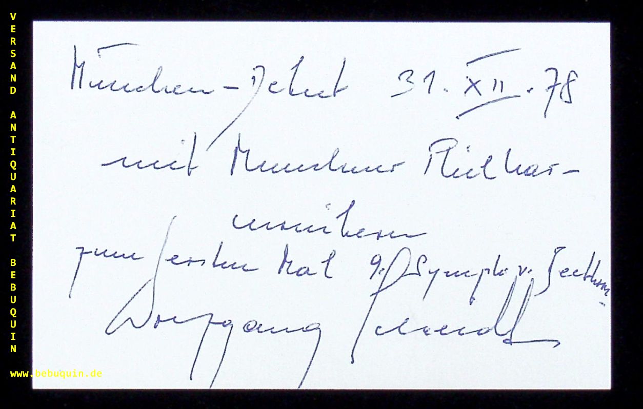 SCHEIDT, Wolfgang (Dirigent): eigenhändig signierte und datierte Autogrammkarte. München, 31.12.1978. 8 x 12,5 cm. Karteikarte. Geboren in Wien, erhielt Wolfgang Scheidt seinen ersten Geigenunterricht mit sechs, seinen ersten Klavierunterricht mit acht Jahren.