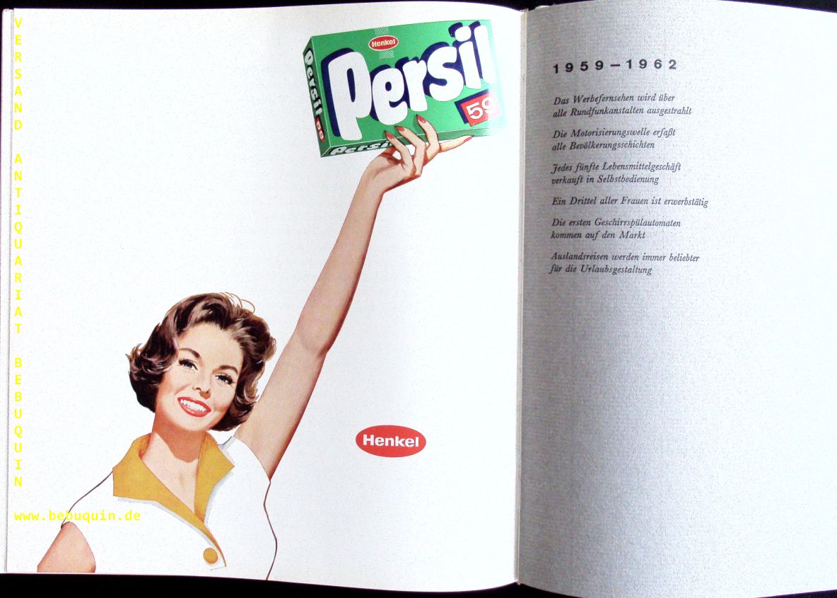 WERBUNG.– GELLENDIEN, Walter: Persil – der Weg einer Marke. Ein Markenname im Zeitgeschehen. Düsseldorf (Henkel), 1962. 4°. ca 100 teils farb. Bilder und Bildtafeln. weißes OHLdr. gutes Ex. EA.
