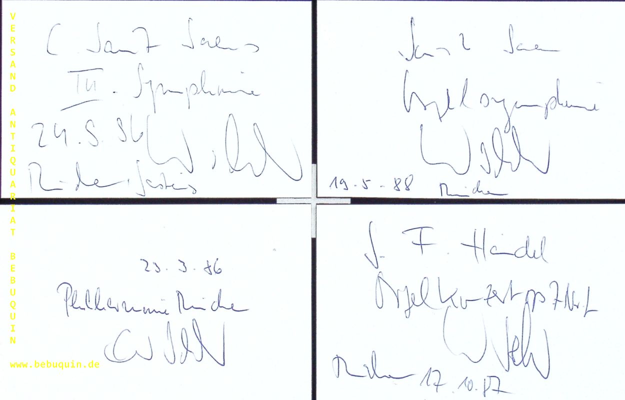 SCHLOTER, Elmar (Organist): 4 eigenhändig signierte und datierte Autogrammkarten. München, 1986 – 1996. 8 x 12,5 cm. 4 Karteikarten. Elmar Schloter (* 6. März 1936; † 23. Mai 2011) war ein deutscher Organist und Dirigent. (Wikipedia)
