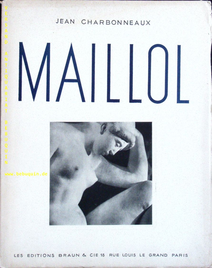 CHARBONNEAUX, Jean: Maillol. Photographies de André Steiner. Paris (Braun), 1947. Gr. 4°. 12 S. + 12 mont. Bildtafeln in Heliogravüre auf stärkerem papier. OPb mitb OUMschl. leicht bestaubt, sonst gutes Ex. EA.