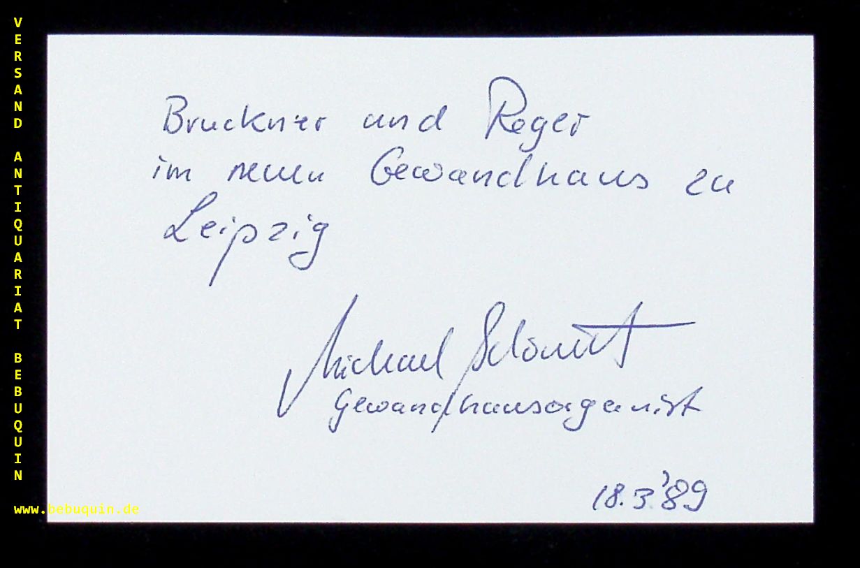 SCHÖNHEIT, Michael (Organist): eigenhändig signierte und datierte Autogrammkarte. Leipzig (Gewandhaus), 18.3.1989. 8 x 12,5 cm. Karteikarte. Michael Schönheit (* 1961 in Saalfeld) ist ein deutscher Organist und Dirigent. (Wikipedia)