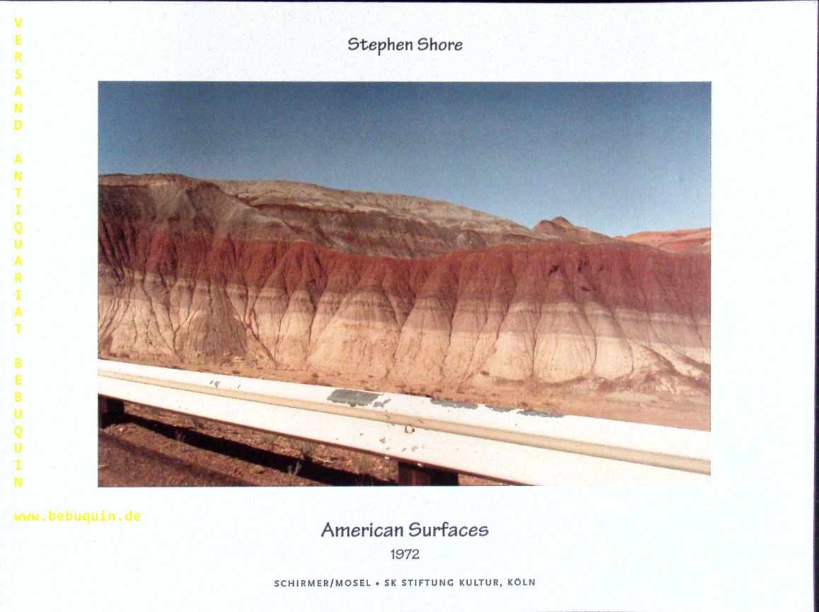 SHORE, Stephen: American surfaces 1972. München (Schirmer/Mosel), 1999. Quer 4°. 40 S. mit farb. fotografischen Bildtafeln. farb. ill. OKart. gutes Ex. EA mitDokumentarfotos, die auf einer Reise durch die Staaten entstanden. Katalog zu Ausstellungen in Köln und Frankfurt. – Koetzle 420. Koetzle 366. Vgl. Mißelbeck 219. Schirmer 212.
