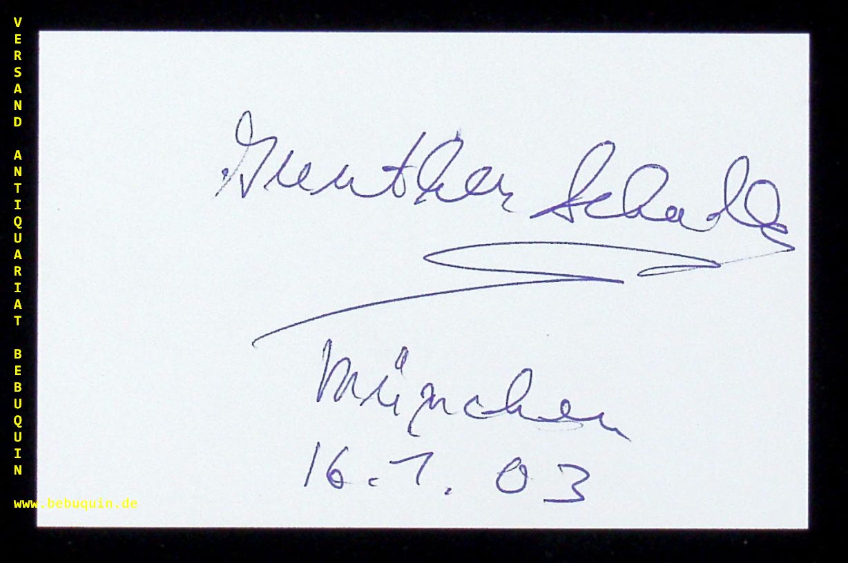 SCHULLER, Gunther (Dirigent): eigenhändig signierte und datierte Autogrammkarte. München, 16.1.2003. 8 x 12,5 cm. Karteikarten. Gunther Alexander Schuller (* 22. November 1925 in New York City, New York; † 21. Juni 2015 in Boston, Massachusetts) war ein US-amerikanischer Hornist, Komponist, Musikwissenschaftler und Dirigent. (Wikipedia)