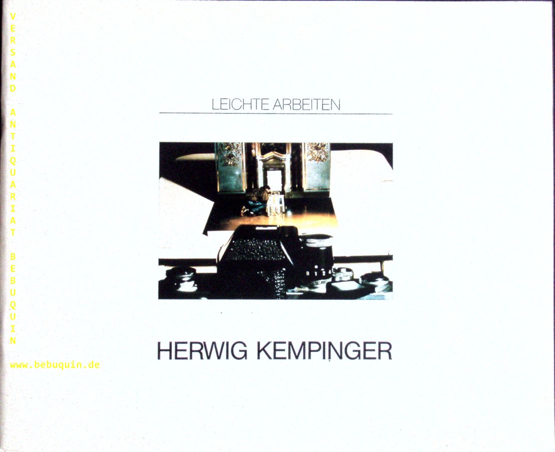 KEMPINGER, Herwig: Leichte Arbeiten. Österreichisches Fotoarchiv im Museum Moderner Kunst Wien; Frankfurter Kunstverein, Frankfurt am Main. Wien, 1985. Quer 4°. 16 Bl. mit zahlr. Ill. farb. ill. OKart. leicht gebräunt. EA.