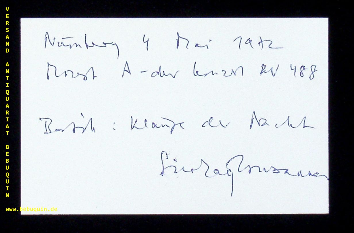 SIROKAY, Zsusanna (Pianistin): eigenhändig datierte und signierte Autogrammkarte. Nürnberg, 4.5.1972. 8 x 12,5 cm. Karteikarte. Zsuzsanna Sirokay (* 28. März 1941 in Ungvár) ist eine ungarische Pianistin. (Wikipedia)
