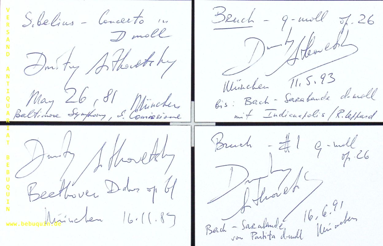SITKOWETSKY, Dmitri (Violinist): 10 eigenhändig signierte und datierte Autogrammkarten. München (Herkulessaal), 1981 – 1997. 8 x 12,5 cm. 10 Karteikarten. . Dmitri Sitkowetski (* 27. September 1954 in Baku) ist ein russischer Violinist und Dirigent. (Wikipedia)