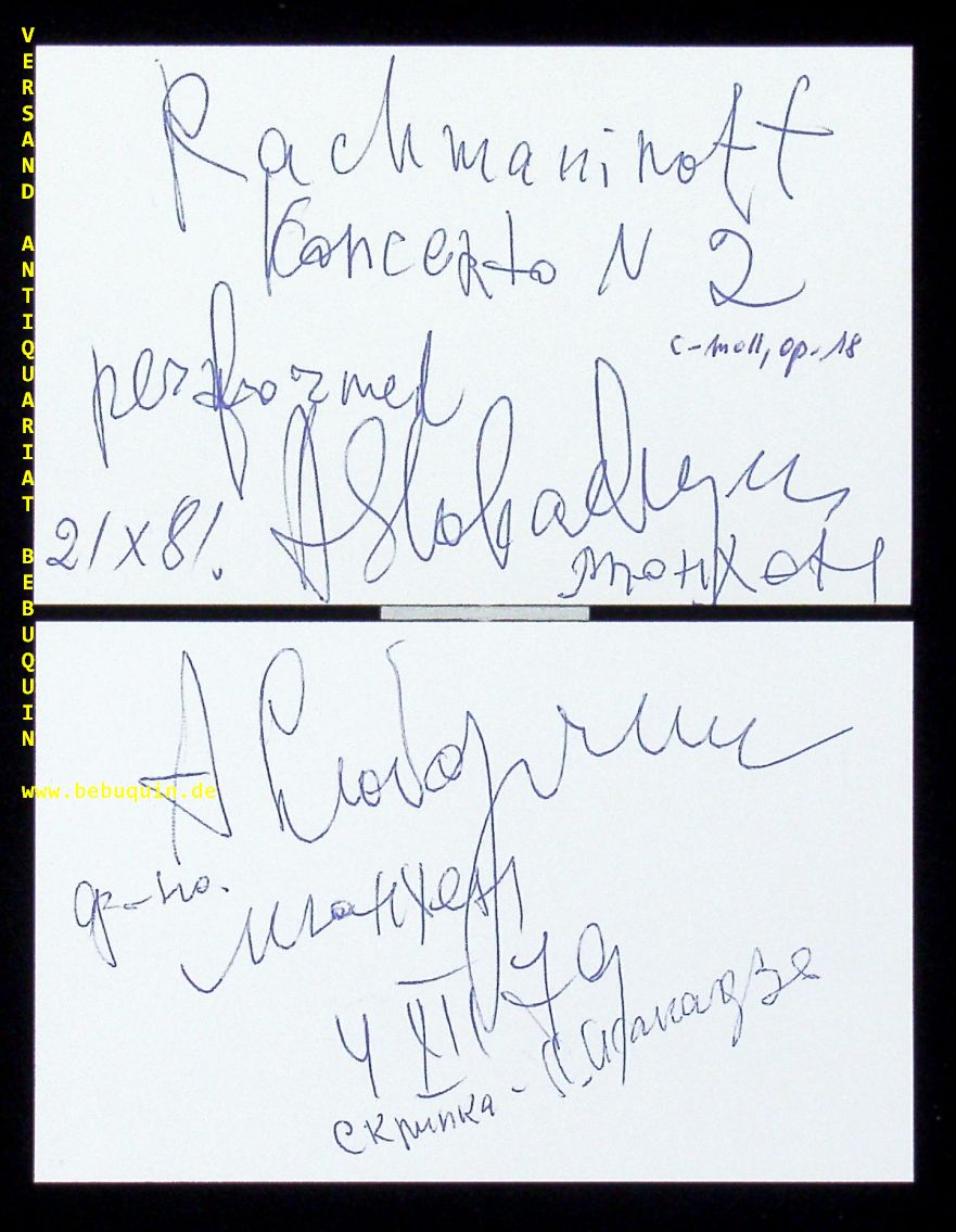 SLOBADYANIK, 2 eigenhändig zweisprachig signierte und datierte Autogrammkarte.…