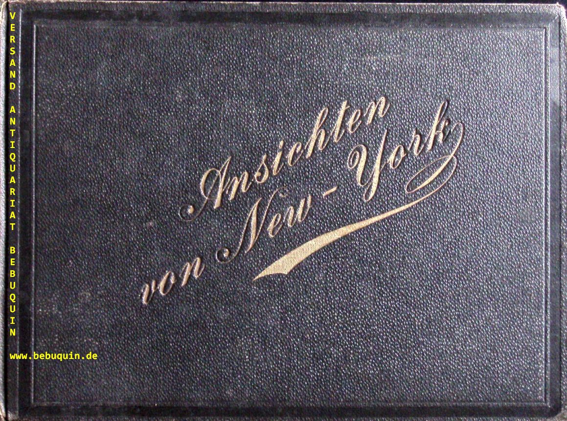 USA.– GREATER NEW YORK ALBUM.– One hundred selected views. New York City, Brooklyn, Staten Island, etc. From recent Photographs. Chicago, New York (Rand, McNally), 1897. Quer Gr. 8°. ca 100 Bl. mit 111 fotografischen Bildern. OLn mit Goldprägung. Kanten etwas bestoßen, Titel etwas stockfleckig, insgesamt gutes Ex. EA.
